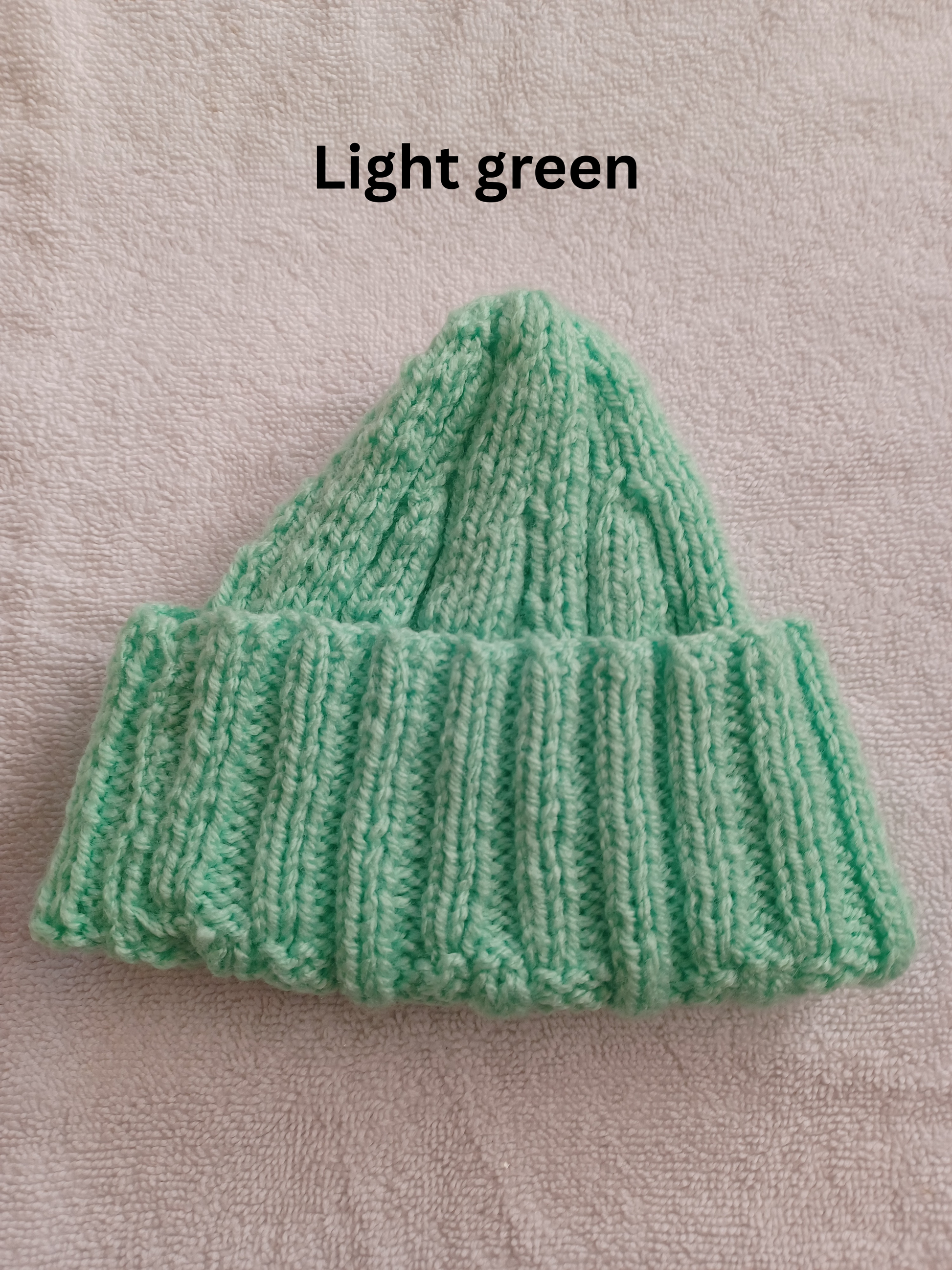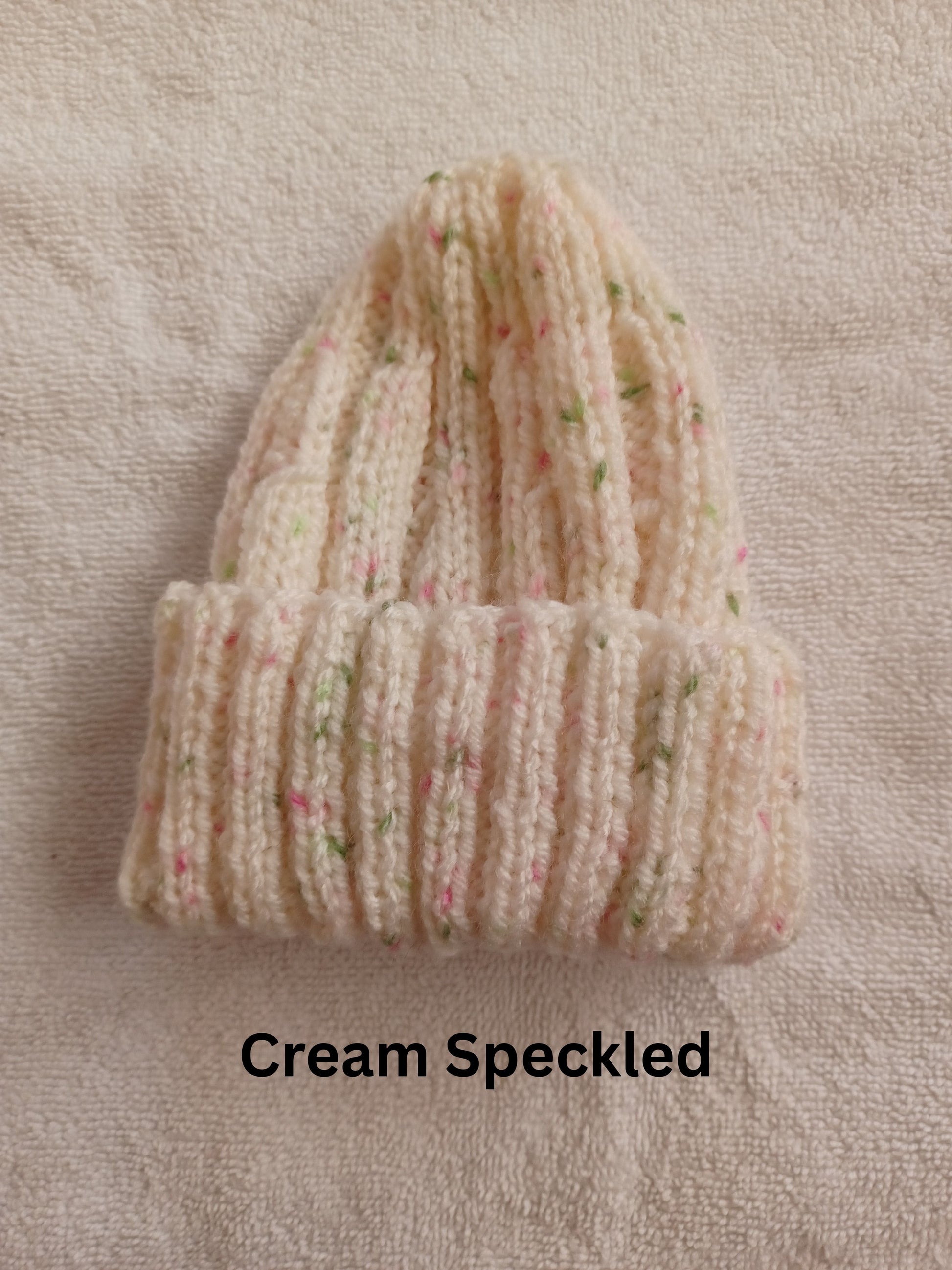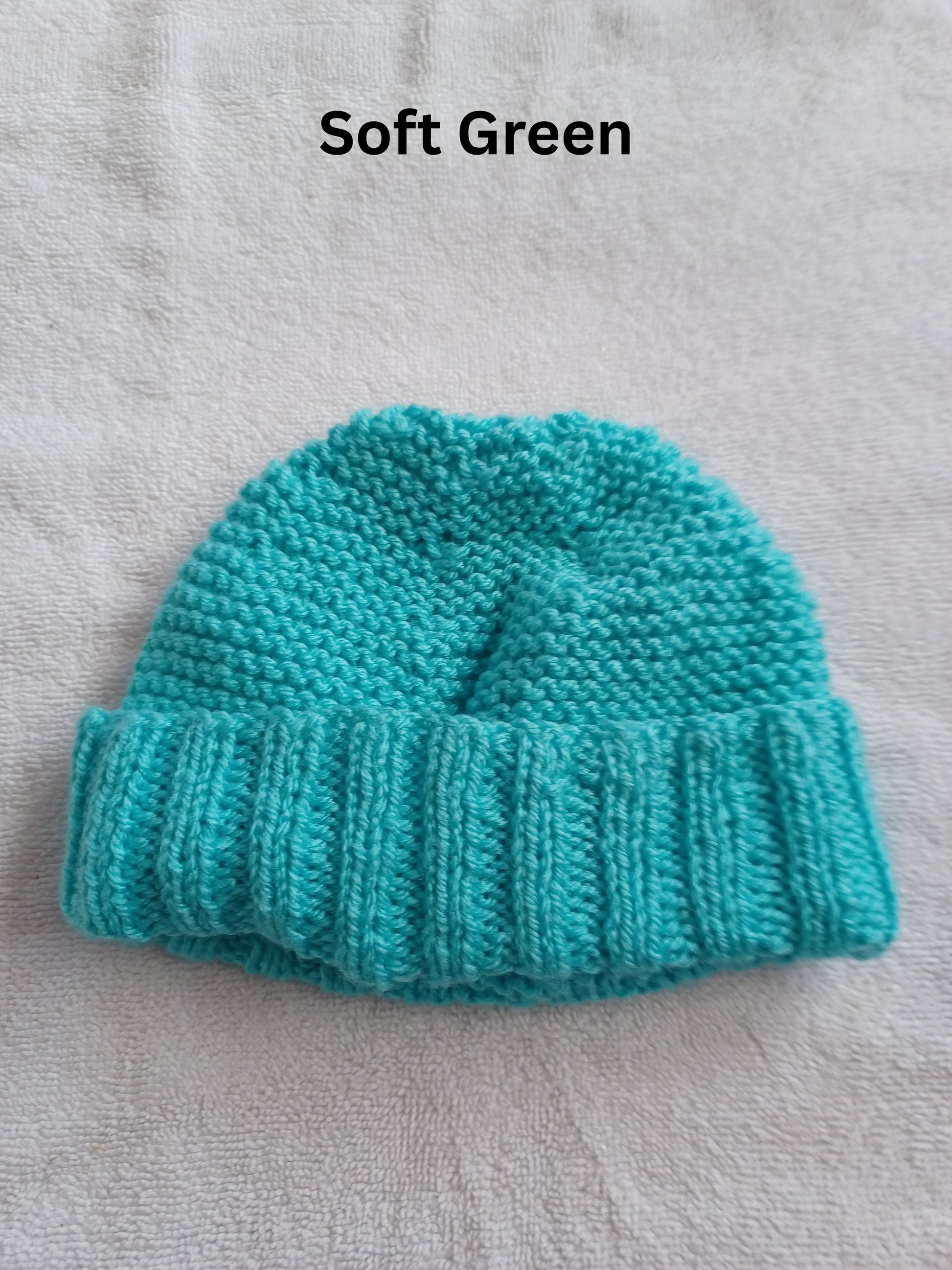 A collection of lovely hand knitted hats, soft and comfortable. Will keep baby warm and match the days mood. Each hat is unique.